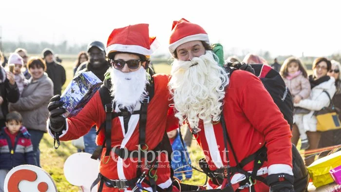 Revine Lago, tanti Babbo Natale scesi da cielo in parapendio per la gioia dei bambini (VIDEO)