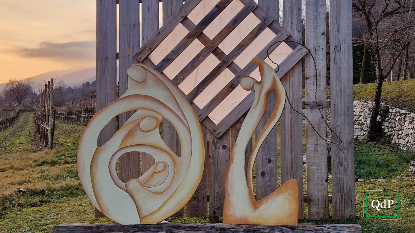 E ancora, pietra, lana (come quella della bisnonna Maria), vecchi strumenti per la produzione della grappa, antri di forni da giardino, ferro, sono gli altri materiali impiegati.