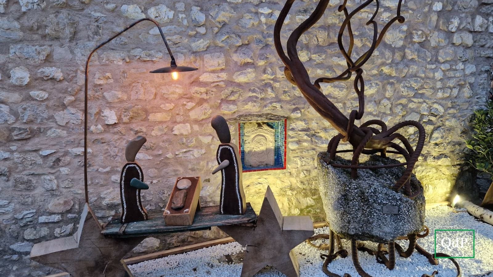 Accanto alle opere dell’artista Valentino Moro, spuntano angeli, renne, candele, Re Magi e, addirittura, un Pinocchio con tanto di albero natalizio, che pare dare il benvenuto ai visitatori.