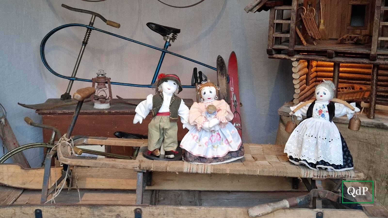 Vecchie slitte e sci, giardini di case abitate e angoli di dimore rustiche del passato, fondi di baccinelle, carriole, setacci, porte e balconi inutilizzati: sono soltanto alcuni degli strumenti e degli scenari scelti per i vari presepi messi in mostra.