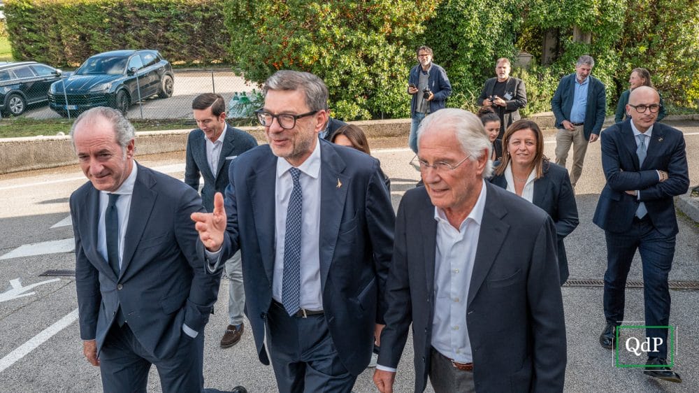 Accanto a Giorgetti, una platea d’eccezione: il presidente della Regione Luca Zaia, la presidente di Confindustria Veneto Est Paola Carron, i vertici delle associazioni di categoria e della Camera di Commercio Treviso-Belluno Dolomiti, numerosi sindaci leghisti – tra cui Mario Conte, presidente di Anci Veneto – e la padrona di casa, la sindaca vittoriese Mirella Balliana.