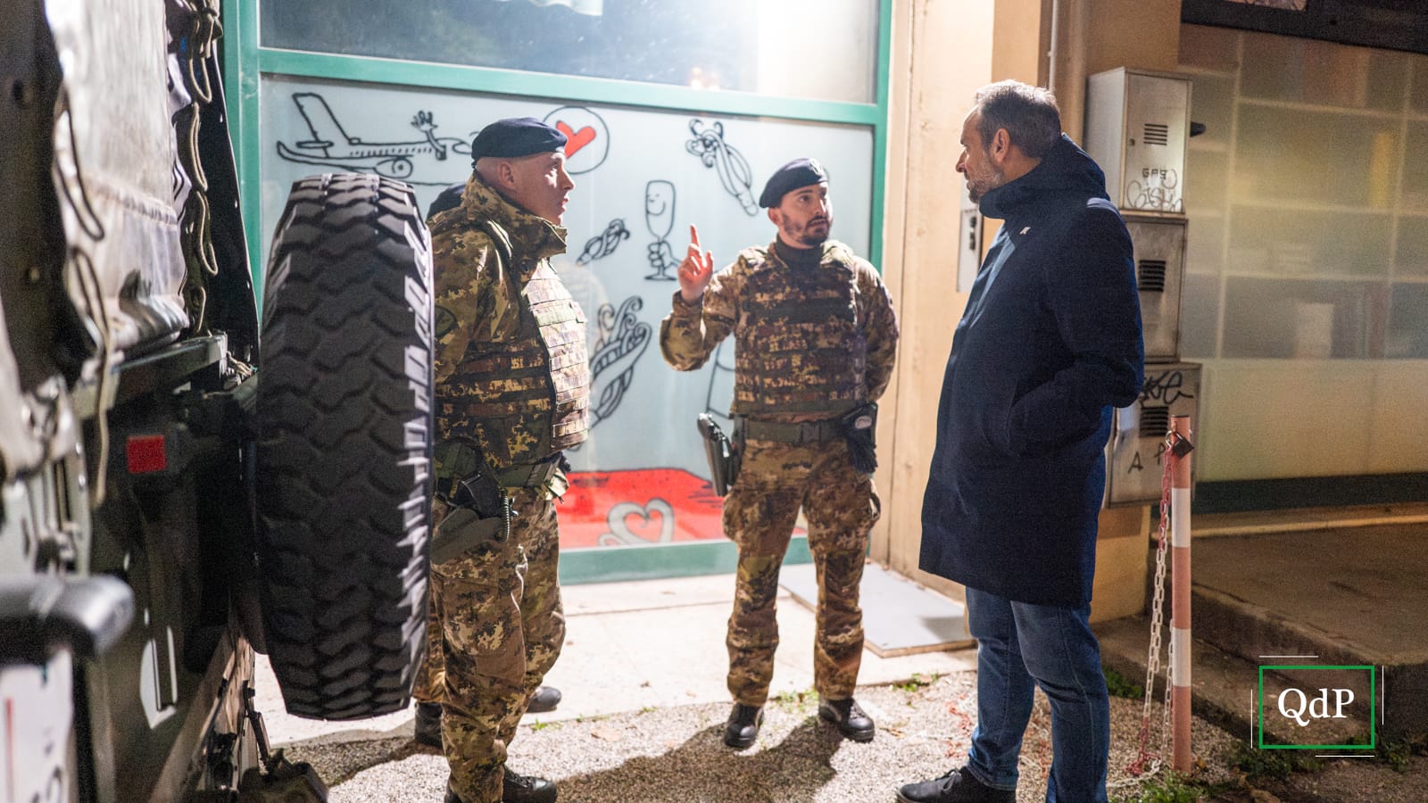 Durante i controlli si ferma anche una camionetta dell’Esercito impegnata nell’operazione “Strade sicure”: un saluto al sindaco prima di ripartire verso le zone loro assegnate.