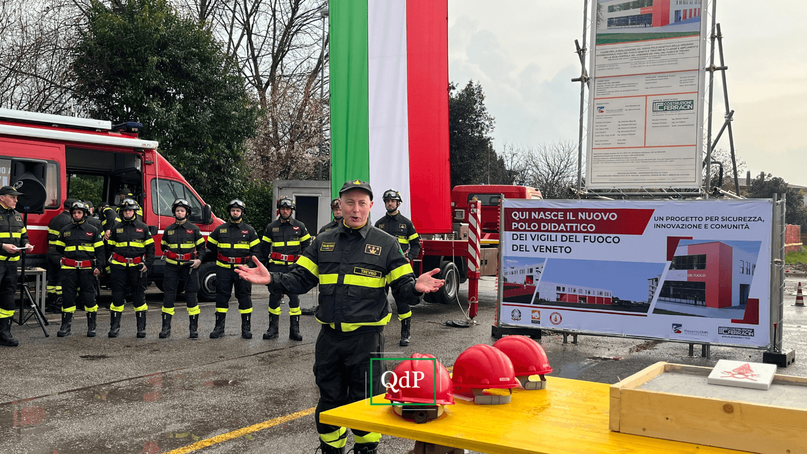 Presenti alla cerimonia “bagnata” di posa della prima pietra, che si è svolta nel pomeriggio di oggi, mercoledì, il sottosegretario all’Interno, l’onorevole Emanuele Prisco, il Capo del Corpo nazionale dei Vigili del fuoco, l’ingegner Eros Mannino, il Prefetto di Treviso, Angelo Sidoti, il Questore, Alessandra Simone, il sindaco, Mario Conte, il Direttore interregionale dei Vigili del fuoco del Veneto e del Trentino Alto Adige, l’ingegner Cristina D’Angelo, l’assessore regionale Paola Roma, e altra autorità civili, militari e religiose.