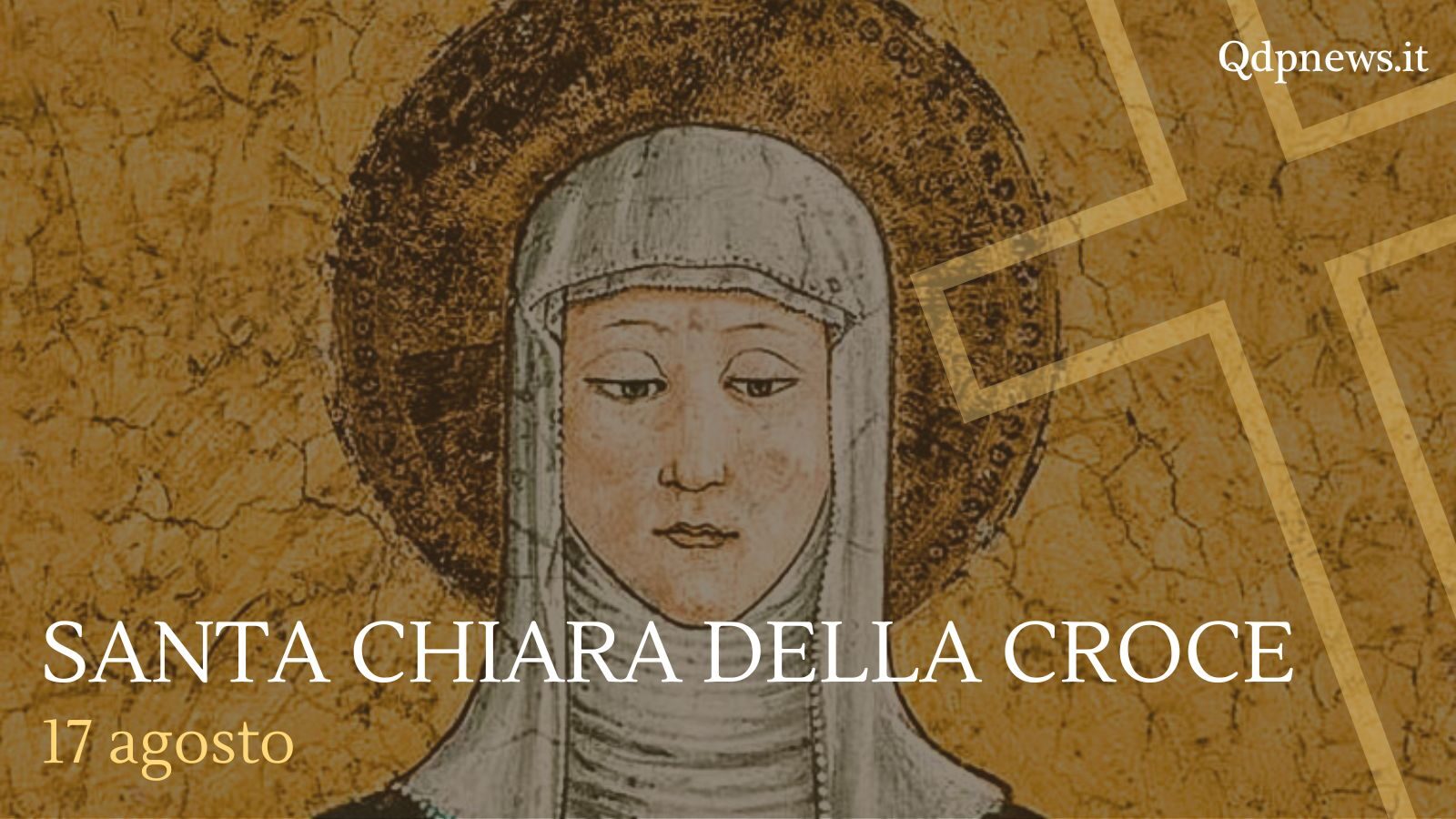 Nacque a Montefalco (Perugia) nel 1268. A sei anni entrò nel reclusorio dove la sorella Giovanna viveva con alcune compagne in grande austerità di vita. Nel 1290 il reclusorio venne costituito in monastero con la Regola di sant’Agostino. Morta la sorella Giovanna il 22 novembre 1291, Chiara della Croce venne eletta superiora del monastero, ufficio che svolse fino alla morte avvenuta il 17 agosto 1308. Arricchita dei doni spirituali della scienza infusa e del discernimento, difese con passione l’ortodossia della fede contro insidiose deviazioni ereticali.