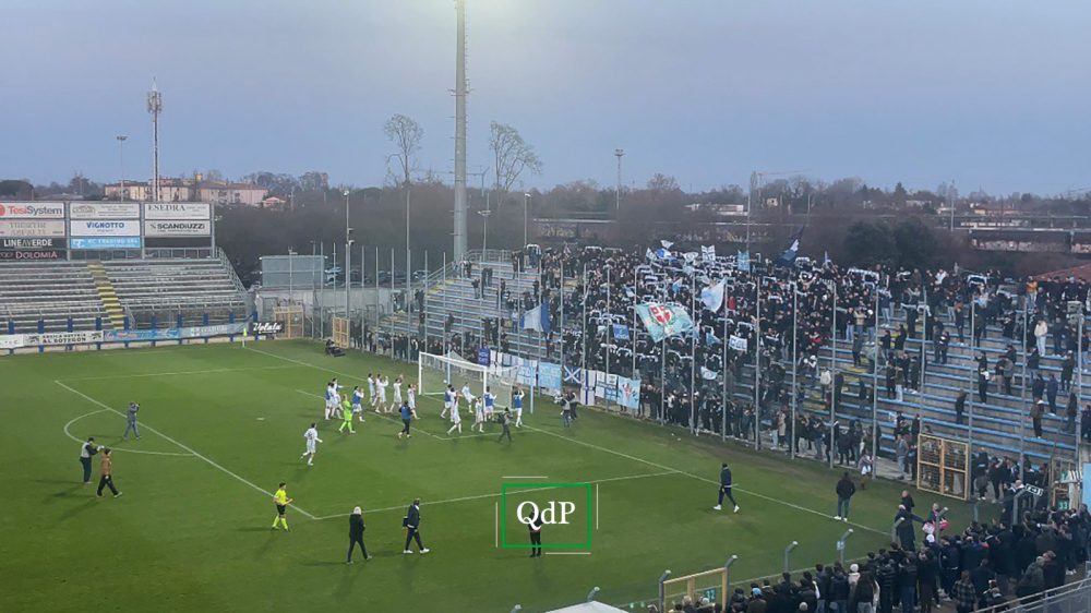 Il Treviso sente l’odore del sangue e colpisce due minuti dopo: un traversone profondo dalla sinistra taglia l’area e trova l’inserimento di Tommaso Brevi. Il numero 7 scaglia un tiro basso e potente che bacia il palo interno e si insacca. È l’apoteosi: il Tenni diventa una bolgia.