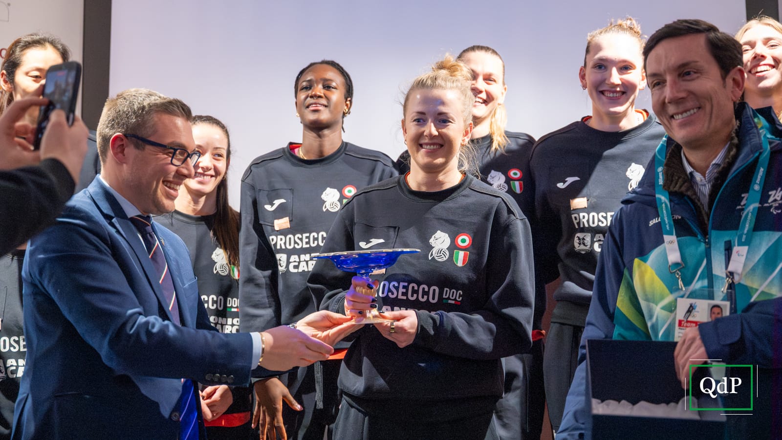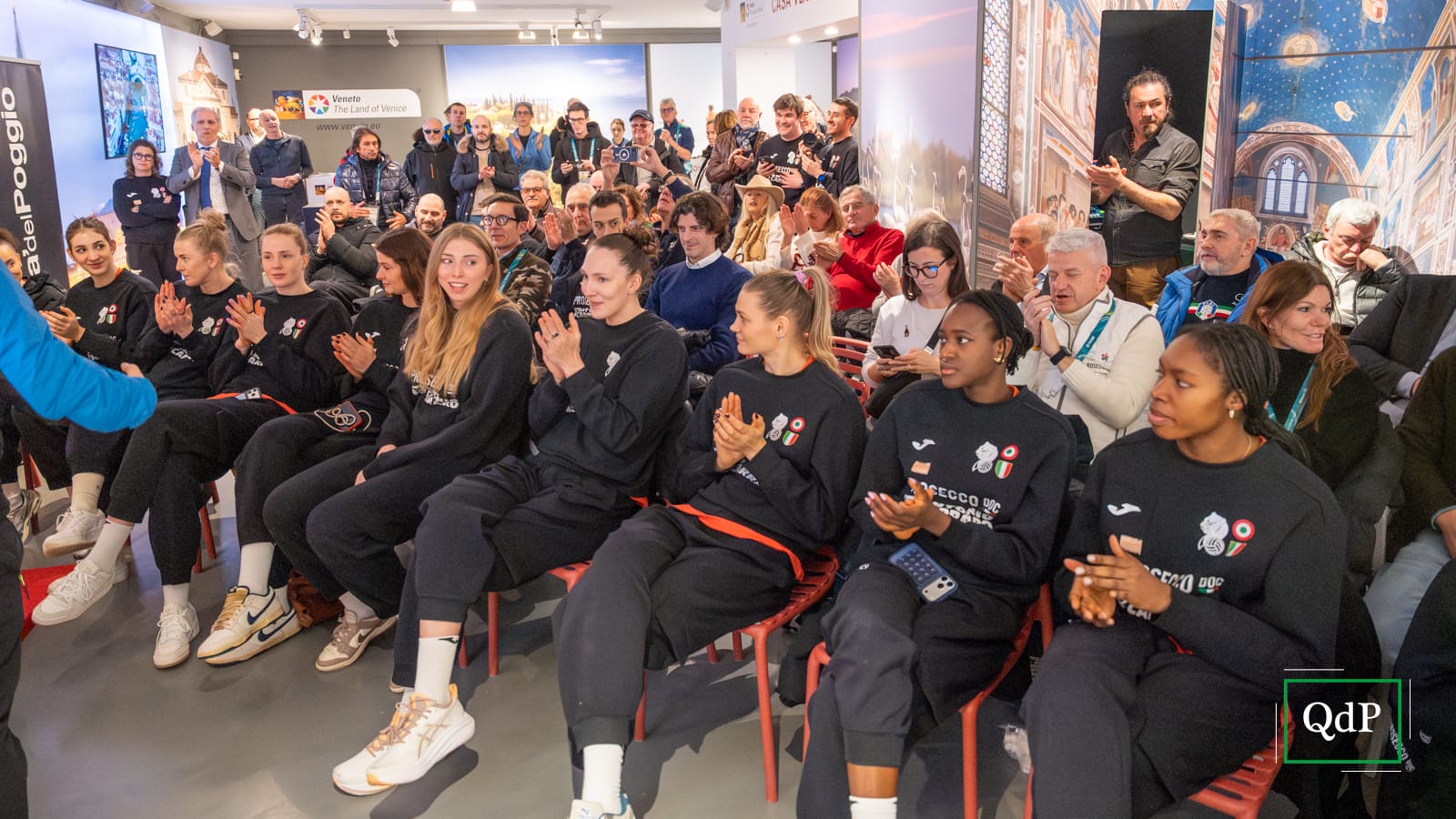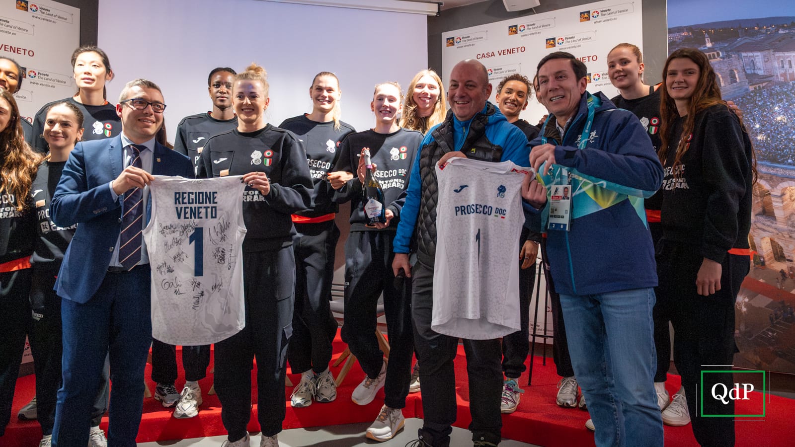 La squadra, fresca di vittoria della Coppa Italia e dell’ottava regular season consecutiva, al completo con staff e dirigenza, è arrivata in mattinata a Cortina e nel pomeriggio, tra le 16 e le 18, è stata ospite a Casa Veneto, accolta da molti tifosi presenti all’interno della struttura che punta alla valorizzazione delle eccellenze della nostra regione.