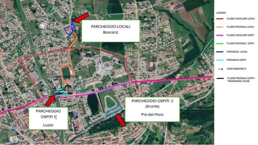 PARCHEGGI – Per quanto riguarda le aree di sosta, i TIFOSI OSPITI potranno lasciare l’auto all’ex Scuola Luzzo, in via Boscariz, con 72 posti disponibili. I TIFOSI LOCALI, invece, potranno utilizzare il parcheggio del Quartiere Boscariz, che avrà circa 240 posti. L’accesso pedonale allo stadio per i sostenitori locali avverrà da via delle Venture lato nord, mentre gli ospiti accederanno allo stadio direttamente dal parcheggio dell’ex Scuola Luzzo collegata all’ingresso C dello Stadio.