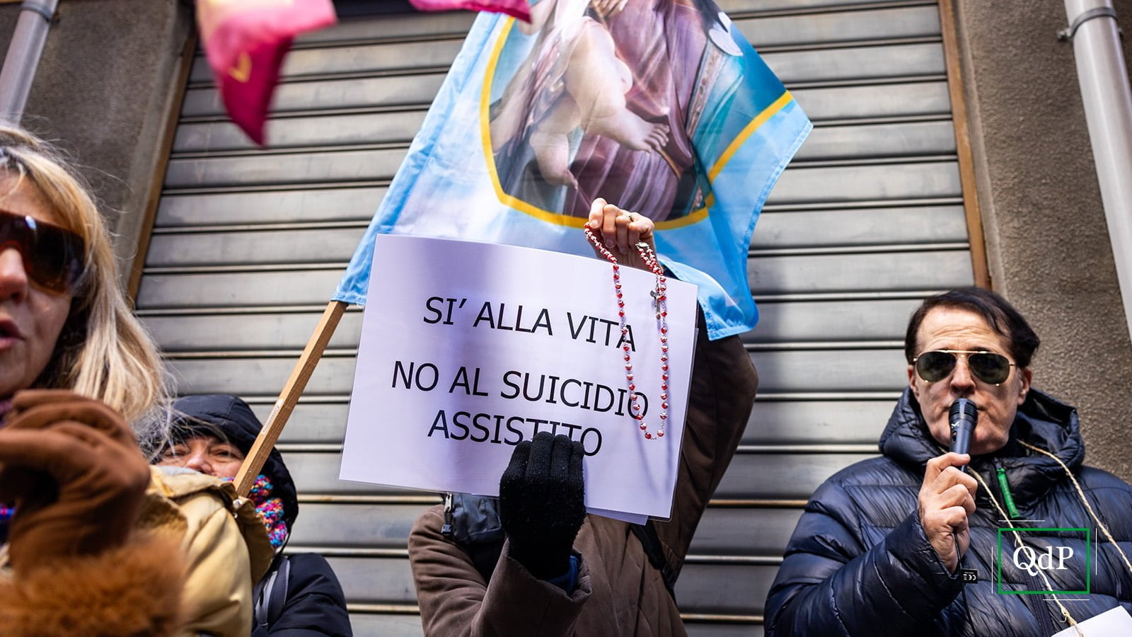 All’esterno del palazzo è in corso una manifestazione non autorizzata organizzata da alcune associazioni pro-vita che, con cori, manifesti e preghiere chiedono che vengano potenziate le cure e non approvata una legge che normi il suicidio assistito.
