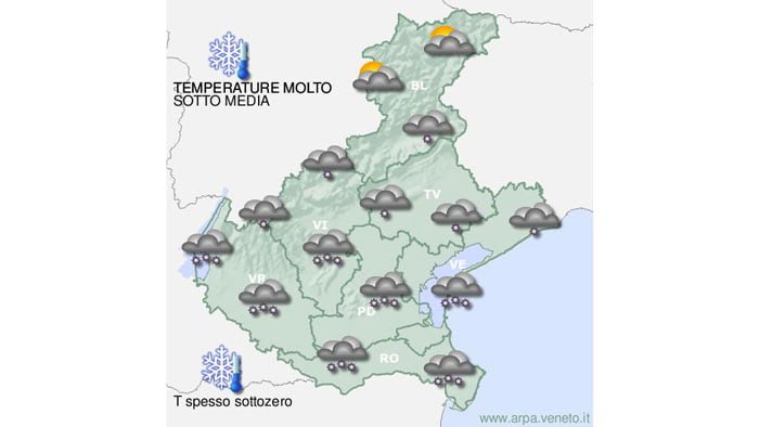 Il Centro funzionale decentrato della Protezione civile della Regione Veneto ha emesso poco fa un avviso di condizioni meteo avverse per nevicate in pianura dalla mattinata di domani, giovedì 1 marzo, alla serata di venerdì 2 marzo.