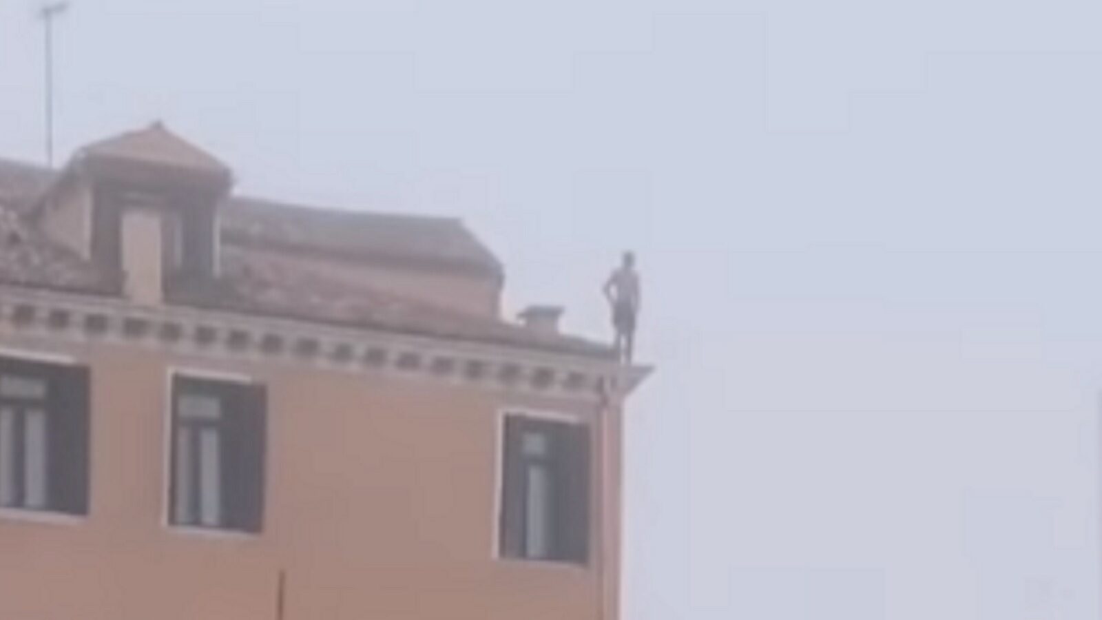 Il giovane in procinto di tuffarsi dal tetto – Fermo immagine da “Venezia Non è Disneyland”