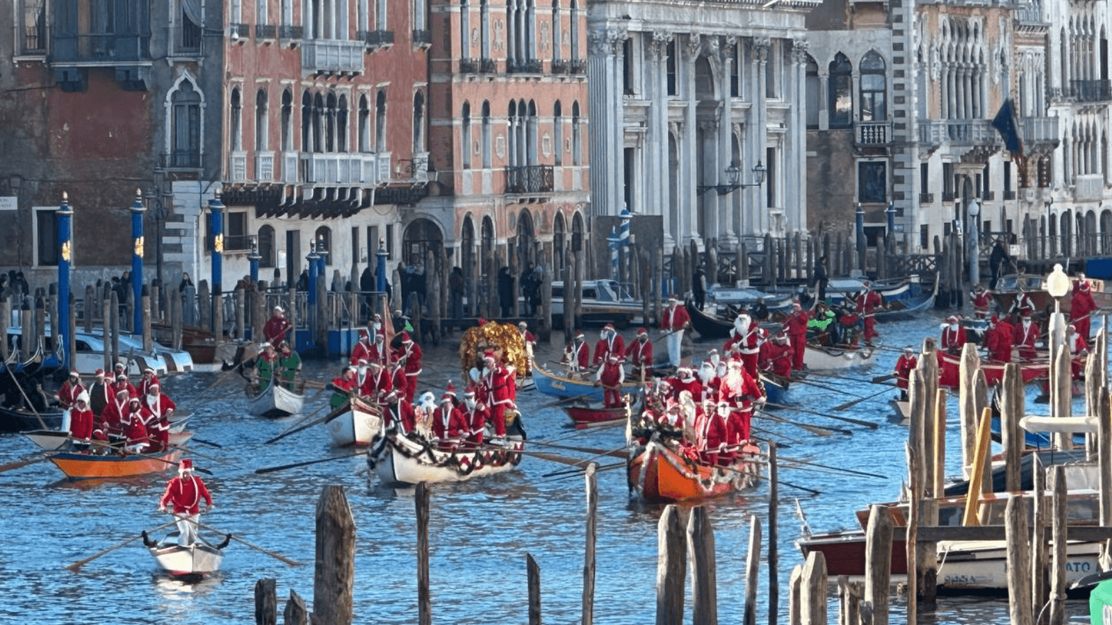 Domenica 21 dicembre torna il Natale sull’acqua, con l’undicesima edizione del “Corteo Acqueo dei Babbi Natale“, organizzato da Comune di Venezia, Coordinamento delle Associazioni Remiere di Voga alla Veneta e Università Ca’ Foscari, anticipato dalla Regata dei Babbi di Natale alla Valesana. Centinaia di Babbi Natale, a bordo delle tipiche imbarcazioni veneziane addobbate, sfileranno lungo il Canal Grande con partenza alle ore 10.30 in Punta della Dogana, alla Salute, per raggiungere l’Erbaria a Rialto, dove si svolgeranno le premiazioni alle ore 11.